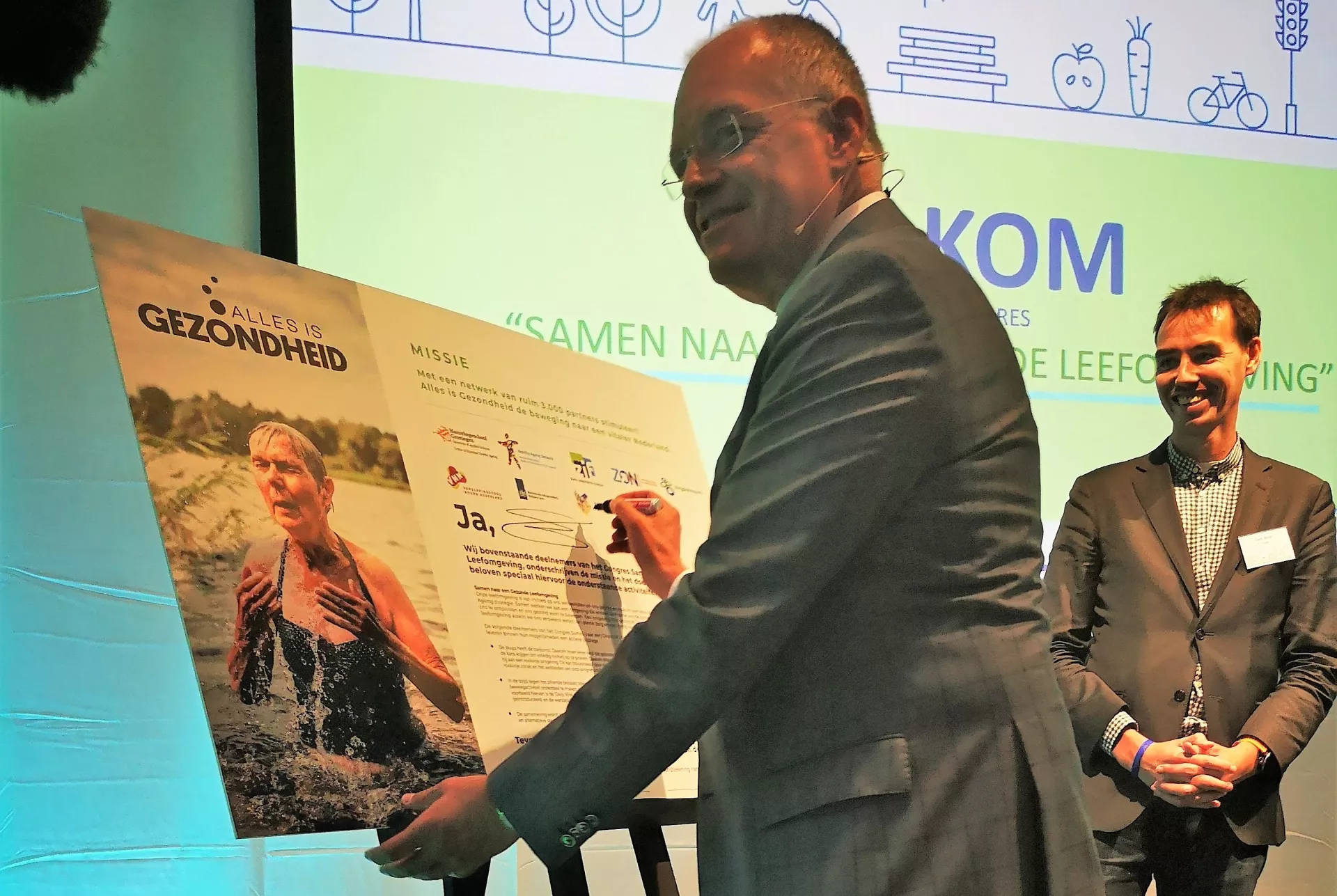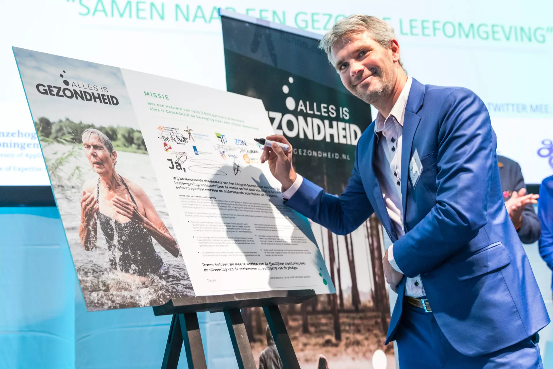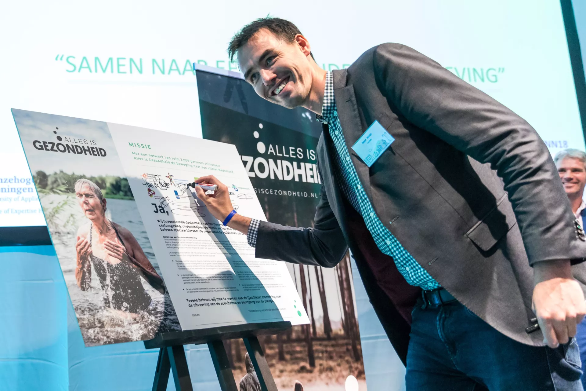 Tijdens ons succesvolle Healthy Ageing congres van Noord-Nederland ‘Samen naar een gezonde leefomgeving’ op 10.10.18 in Leeuwarden werd deze mooie ambitie kracht bij gezet door het gezamenlijk ondertekenen van een Alles is Gezondheid pledge.