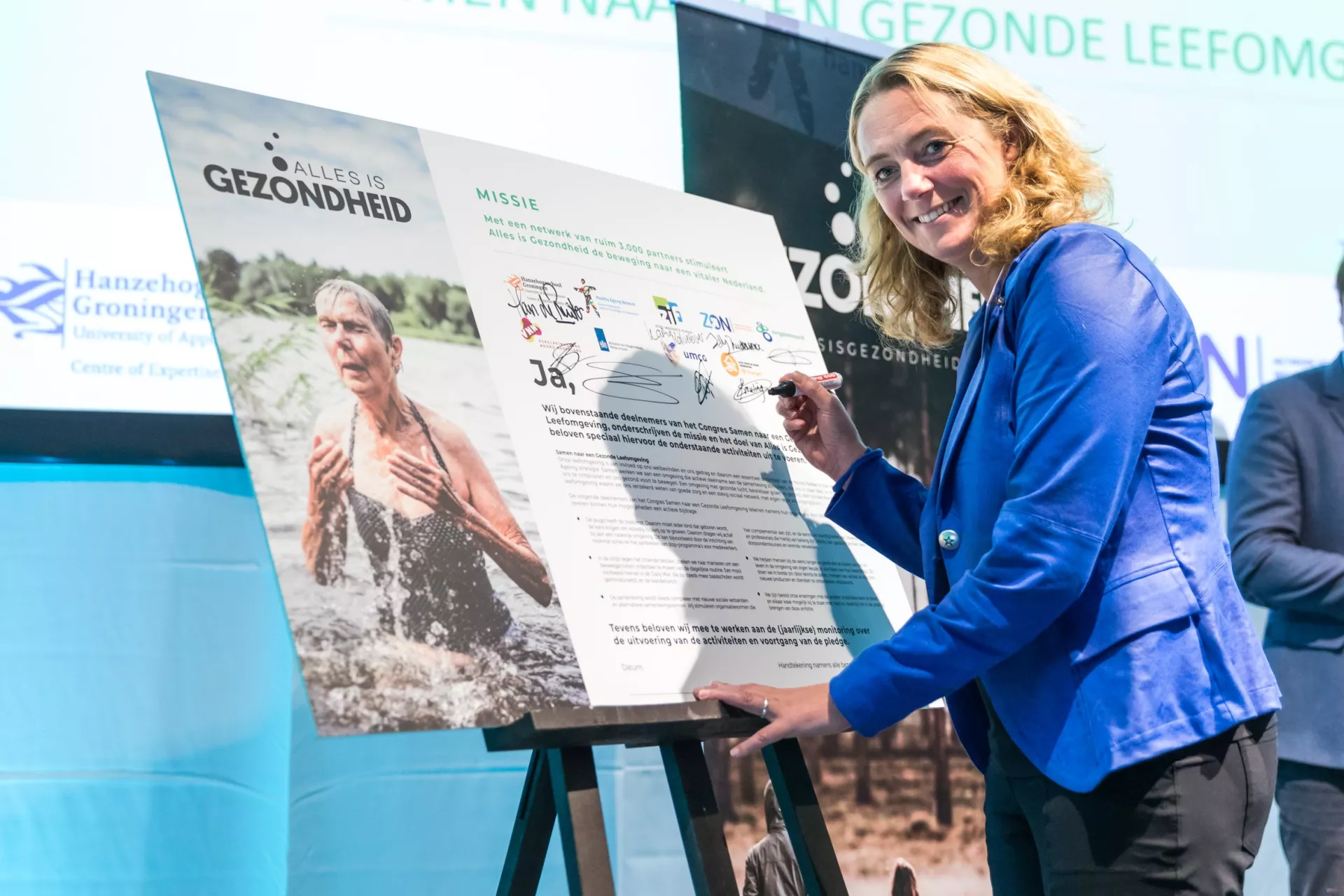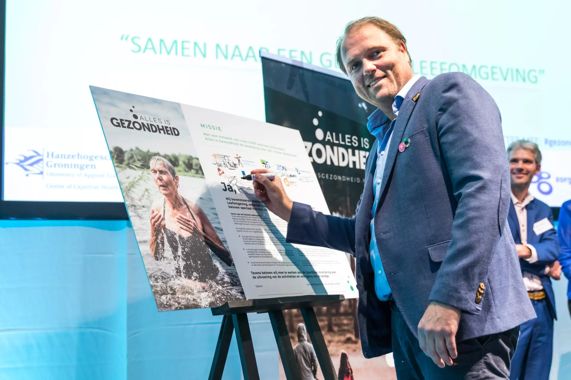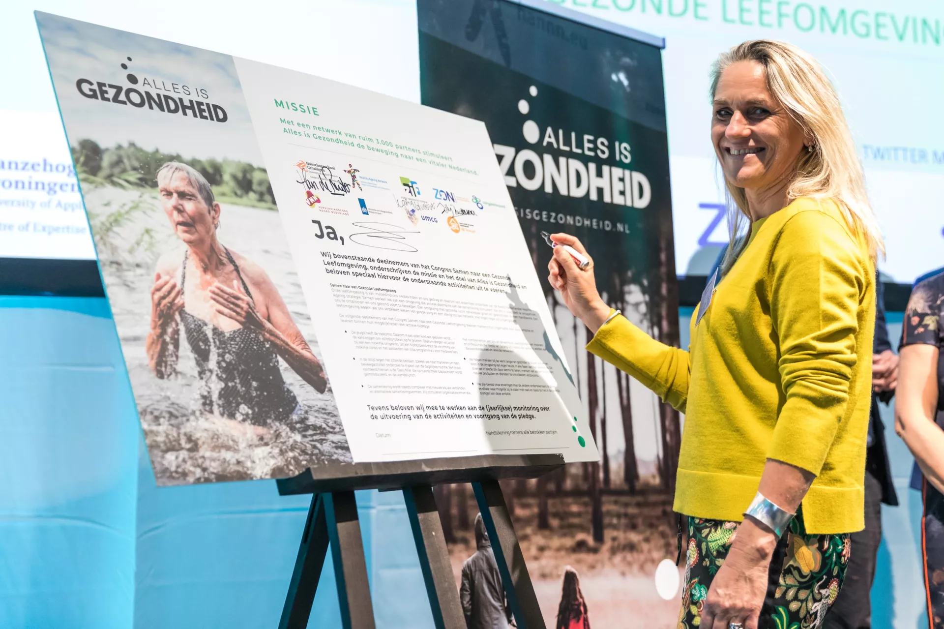 Tijdens ons succesvolle Healthy Ageing congres van Noord-Nederland ‘Samen naar een gezonde leefomgeving’ op 10.10.18 in Leeuwarden werd deze mooie ambitie kracht bij gezet door het gezamenlijk ondertekenen van een Alles is Gezondheid pledge.