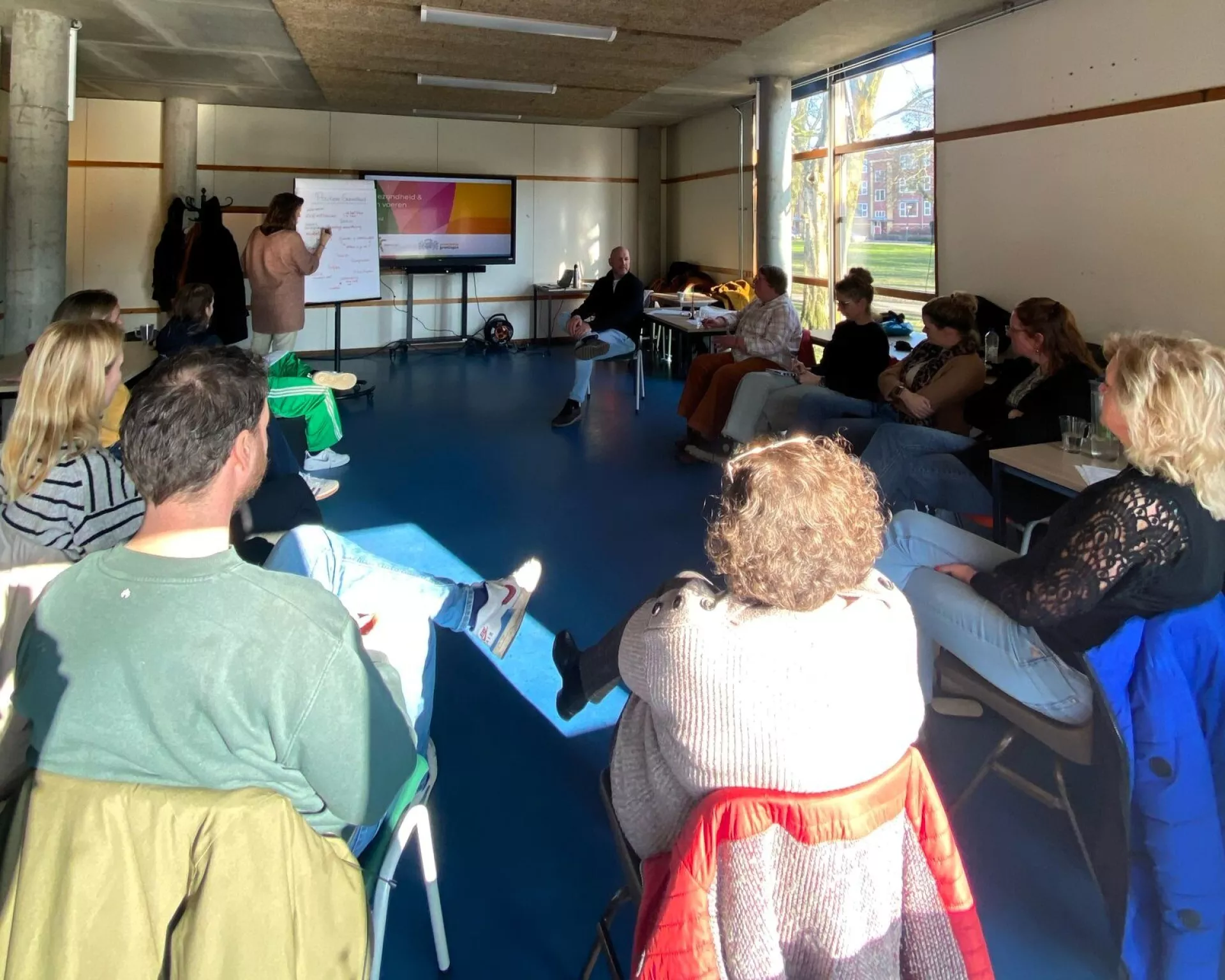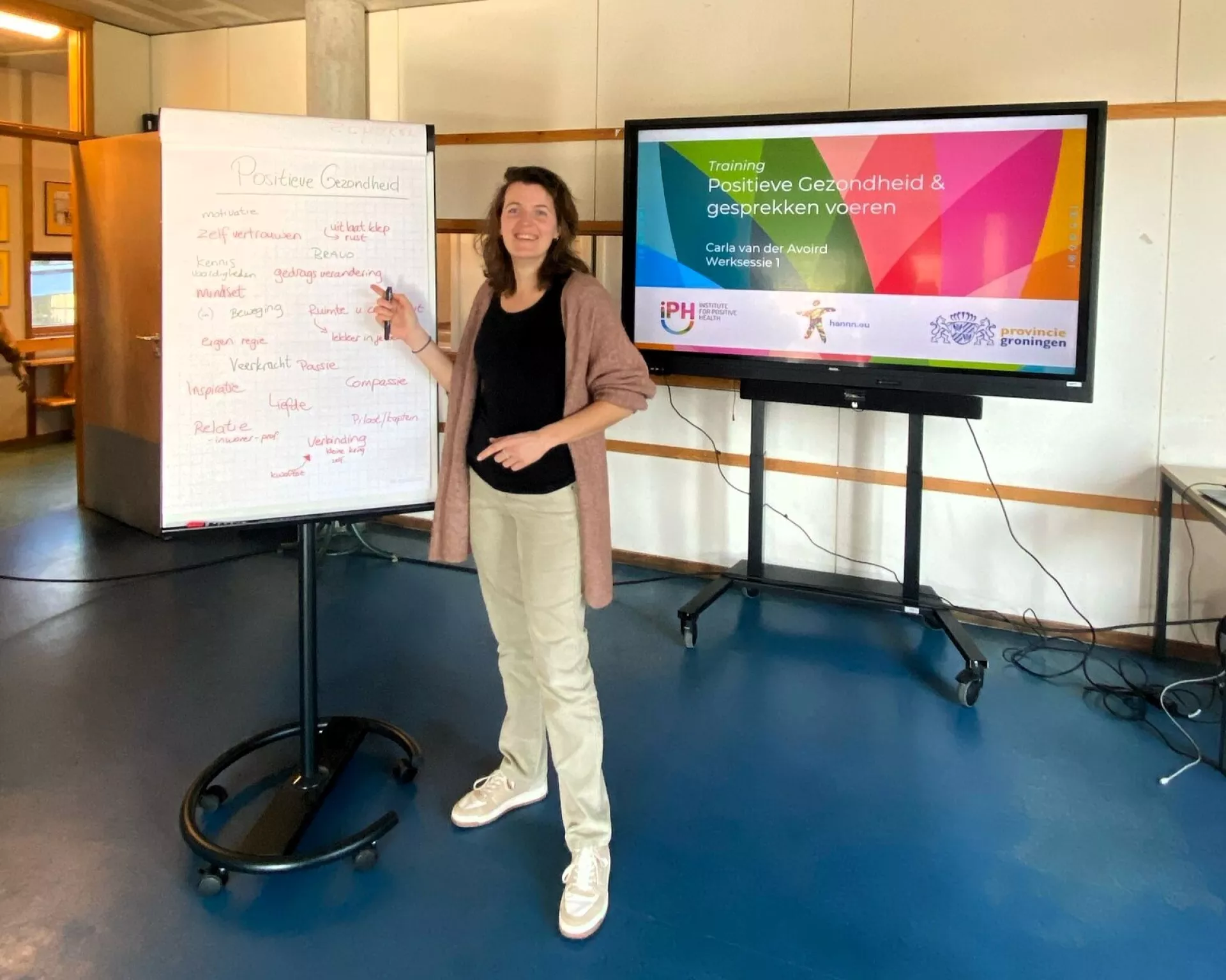 De training in de gemeente Groningen, gegeven door iPH trainer Carla van der Avoird, is inmiddels van start gegaan op een mooie locatie in de Oosterparkwijk. De deelnemers zijn werkzaam bij diverse organisaties die nauw samenwerken met inwoners, zoals WIJ Groningen, UMCG, Humanitas en gemeente Groningen. Sommige deelnemers waren al bekend met het gedachtengoed en pasten dit zelfs al toe in hun werk, voor anderen is het nog nieuwe stof. Iedereen is gemotiveerd om Positieve Gezondheid te integreren in hun dagelijkse werk. Om met elkaar te werken aan de beweging van ziekte en zorg naar gezondheid en gedrag.