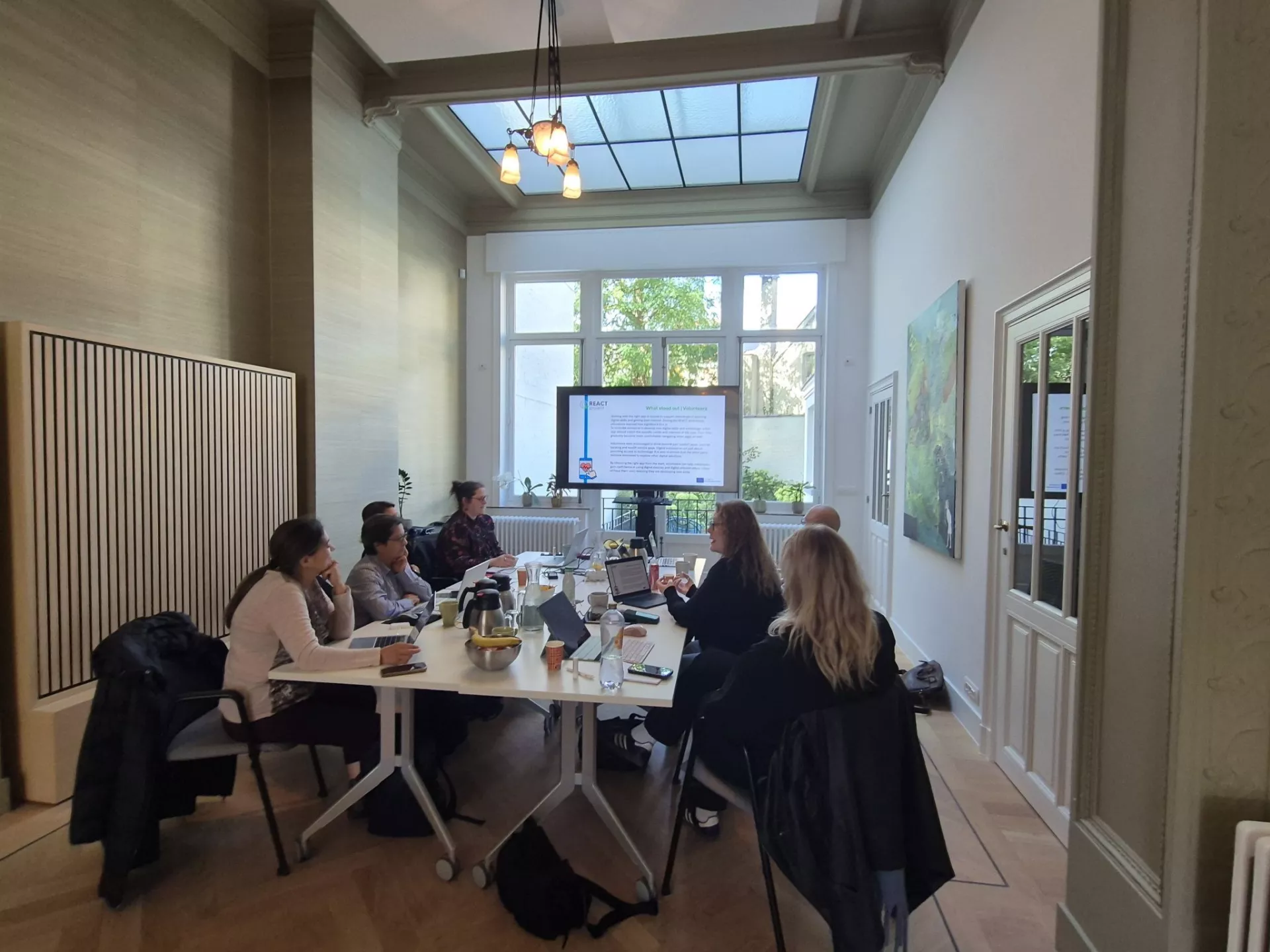 De bijeenkomst in Brussel stond in het teken van de afronding van het project en de voorbereiding van het internationale Webinar eind september. Tijdens dit Webinar deelden de projectpartners uit Denemarken, Frankrijk, Nederland en Portugal hun ervaringen met de verschillende regio’s en organisaties waarmee in dit project is samengewerkt. Dit varieert van studenten die ouderen ondersteunen met eHealth tools tot lokale samenwerking tussen gemeenten en zorgverleners. Op veel plekken wordt gewerkt aan manieren om digitale uitsluiting tegen te gaan.