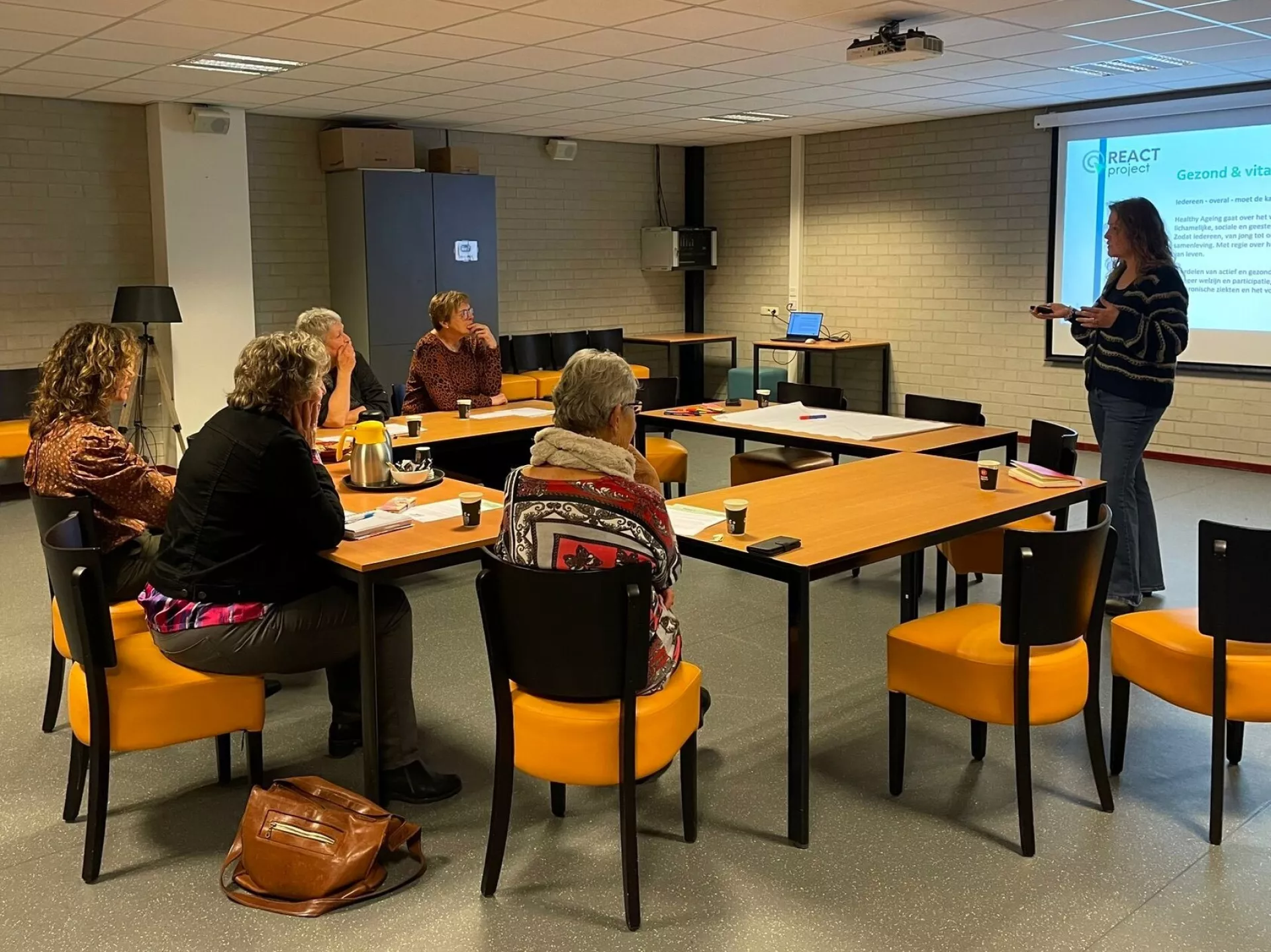 Begin december reisden we opnieuw naar Friesland. Dit keer werden we verwelkomd bij Bloeizone Oldeberkoop. Hier stonden de vrijwilligers centraal. Elke deelnemer was reeds actief met het helpen en ondersteunen van de meer kwetsbare mede inwoners in hun gemeenschap. Ze wilden graag meer weten over eHealth als aanvulling op wat ze al doen. Aan de hand van de REACT modules zijn we met elkaar in gesprek gegaan. Om met elkaar te kijken hoe zij hun mede inwoners ook kunnen helpen bij vragen rondom eHealth en digitale inclusie.