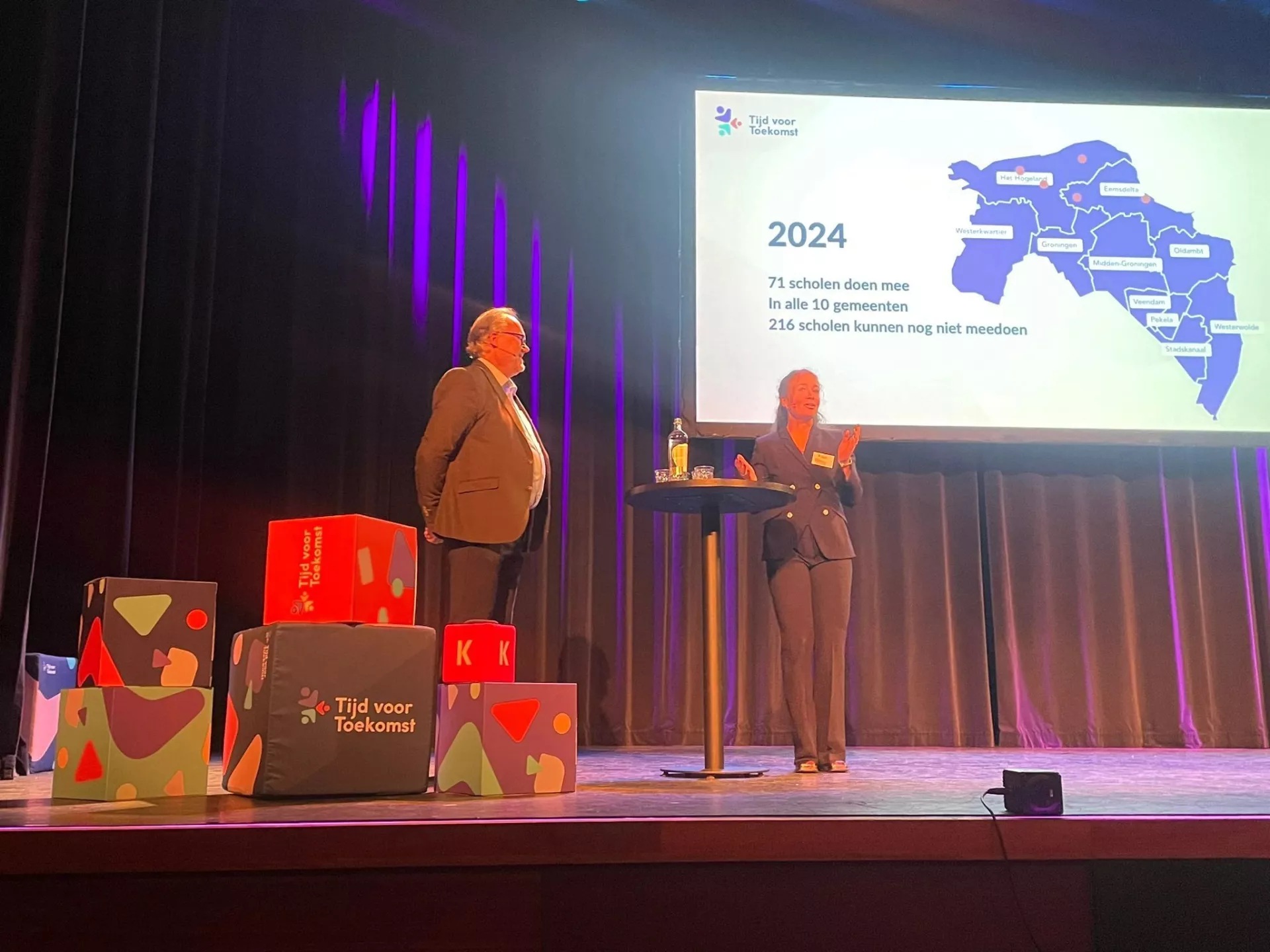 Begin oktober was alweer het derde Tijd voor Toekomst symposium. Dit jaar waren we te gast in het Kielzog theater Hoogezand. Daniëlle Bekkering (directeur HANNN) en Marc Altink trapten het programma af door de deelnemers te gidsen door het verleden, heden en toekomst van het programma.