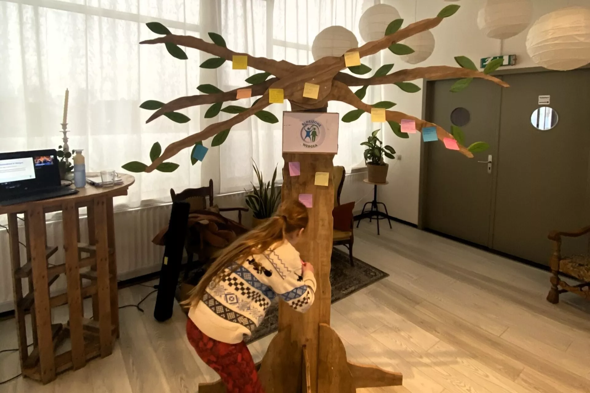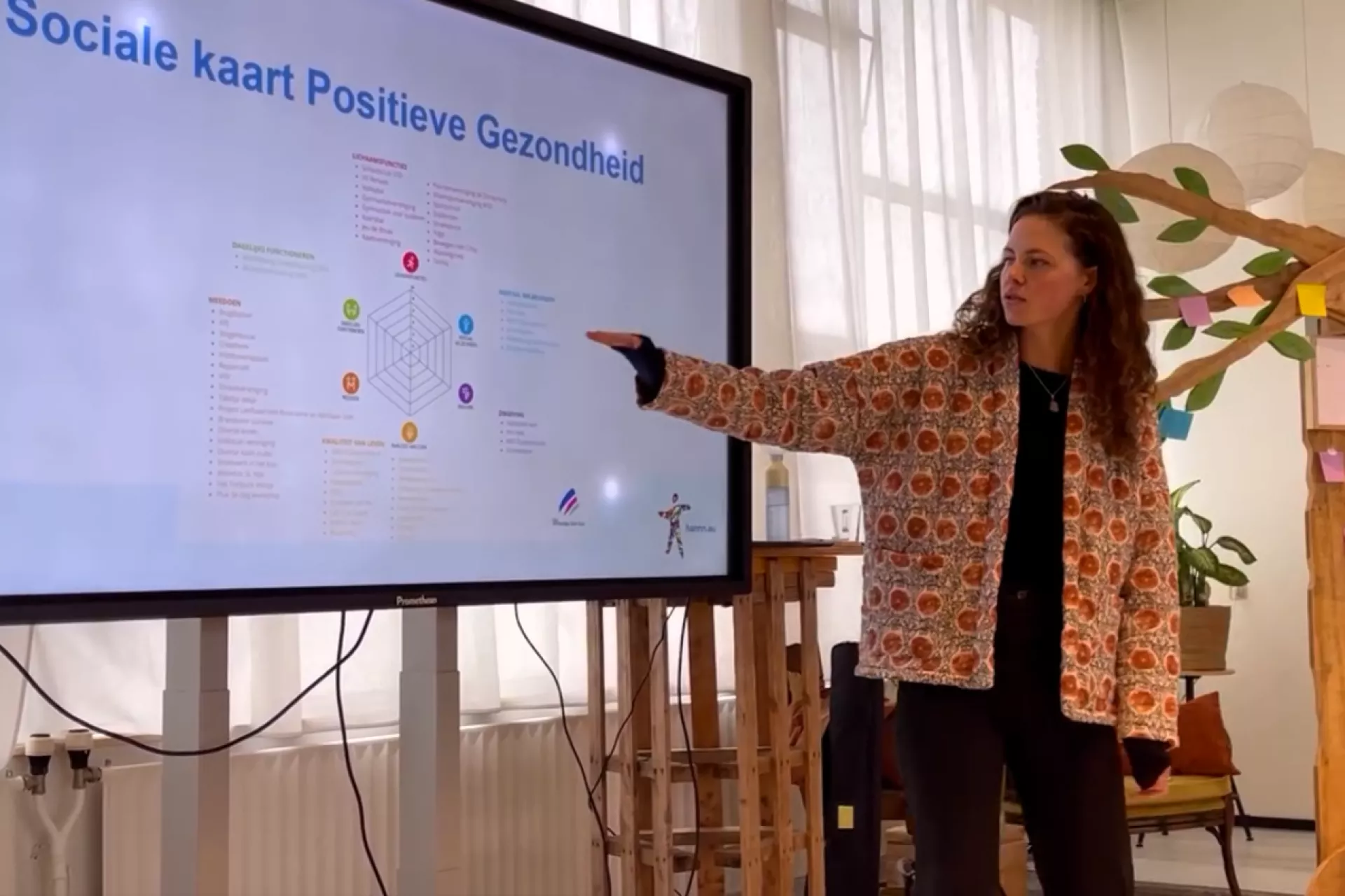 Na de uitleg over het spinnenweb kreeg iedereen de opdracht om het spinnenweb zelf in te vullen. Vervolgens ging men met elkaar in gesprek aan de hand van de resultaten. Bij de laatste oefening van de workshop mochten de deelnemers actief nadenken over de vragen: ‘Wie of wat heb jij van je omgeving nodig om in beweging te komen?’ en ‘Wat kun jij doen om anderen in Wergea te helpen richting Positieve Gezondheid?’ De deelnemers plakten hun ideeën op de ‘ideeënboom’.