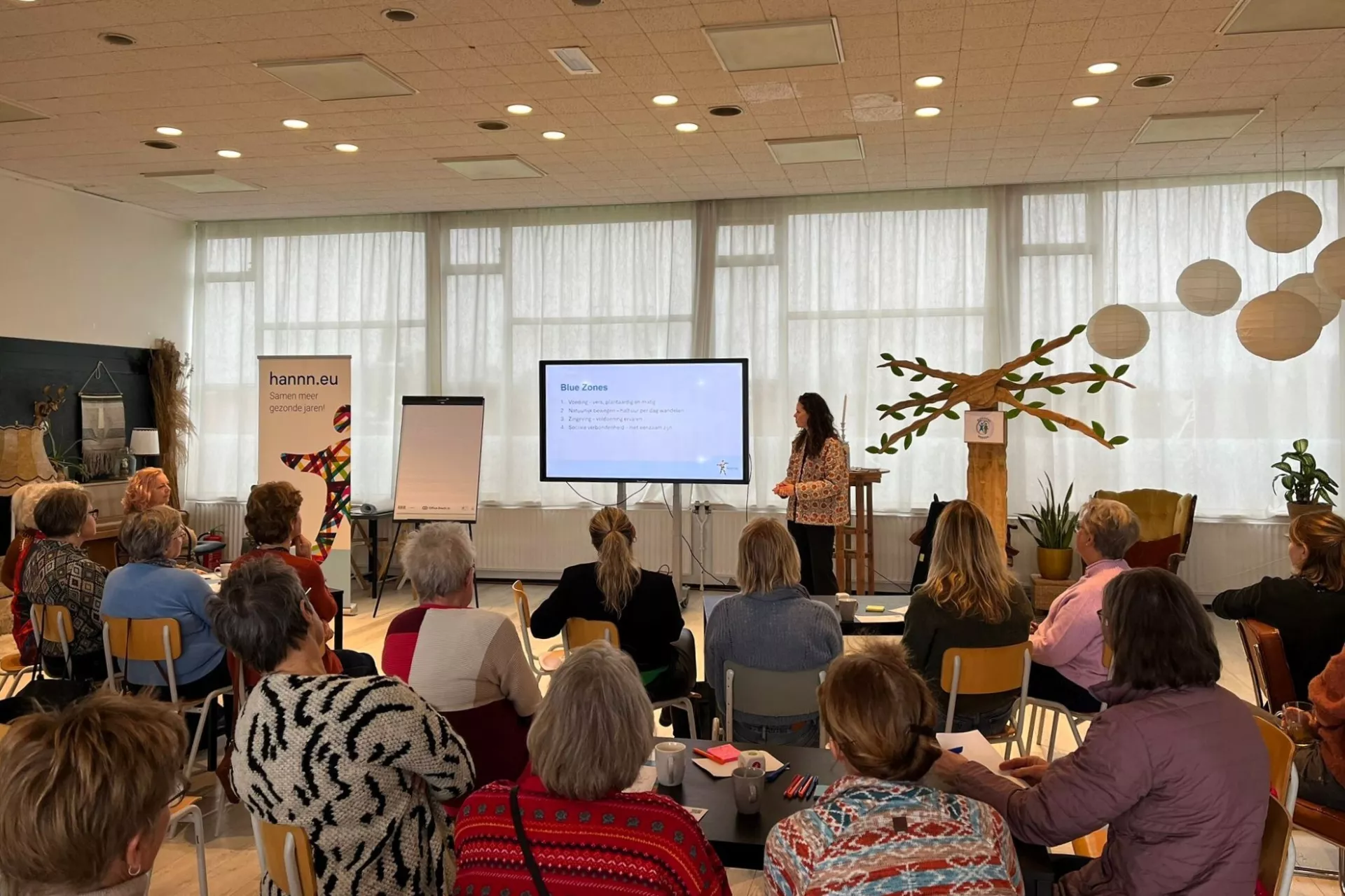 Tijdens de workshop werden bewoners gestimuleerd om actief mee te denken over wat Positieve Gezondheid hen kan brengen. Na een introductie over HANNN en de transitie van ‘ziekte en zorg naar gezondheid en gedrag', kregen de deelnemers de mogelijkheid om in groepjes na te denken over wat gezondheid voor hen betekent. Vervolgens werden ze meegenomen in de achtergrond van het gedachtegoed van Positieve Gezondheid.